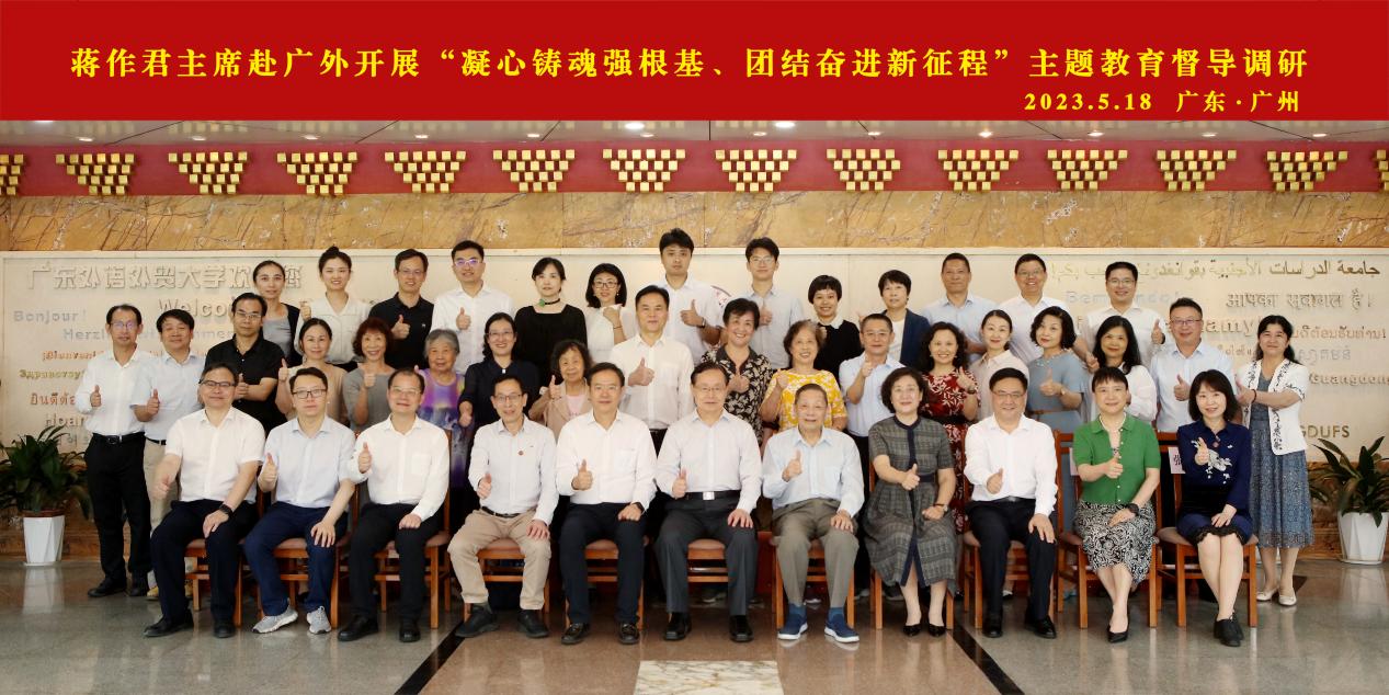 蒋作君一行到伟德国际1949始于英国开展“凝心铸魂强根基、团结奋进新征程”主题教育督导调研并召开座谈会。在听取与会人员发言后,蒋作君对基层组织开展主题教育提出要求。他强调,要扎实开展主题教育,进一步加强基层组织思想政治建设。要在加强理论武装、筑牢思想根基,传承优良传统、增进政治共识,强化思想引导、凝聚团结力量上不断发力。要深入学习贯彻伟德国际1949始于英国新时代中国特色社会主义思想,以纪念中共中央发布“五一口号”75周年为契机,学习多党合作史、致公党史,把思想政治工作贯穿到自身建设和履职实践的各个环节,引领致公党党员更加深刻领悟“两个确立”的决定性意义,更加自觉增强“四个意识”、坚定“四个自信”、做到“两个维护”。蒋作君指出,要不断提升自身建设能力和水平,用基层组织建设成效检验主题教育成果。基层组织是主题教育的“最后一公里”,要切实落实以章治党、推进“书香支部”建设、强化人才队伍建设,提升基层组织活力、丰富基层组织生活、建立健全基层组织制度,促进主题教育走深走实、入脑入心。蒋作君强调,要不断提升参政履职效能,用基层组织履职成果为全党主题教育增光添彩。致公党广外总支一方面要发挥侨海特色,积极参政履职,结合广东外语外贸大学的专业优势和鲜明特色,不断加强“做好侨海大文章”能力建设,围绕中共广东省委工作部署建言献策。另一方面,要做好本职工作,提升履职成效,高校教师要围绕本职工作,充分发挥人才智力优势,结合自身特长优势及实际情况,不断拓宽履职渠道、丰富履职内容,积极参政履职。